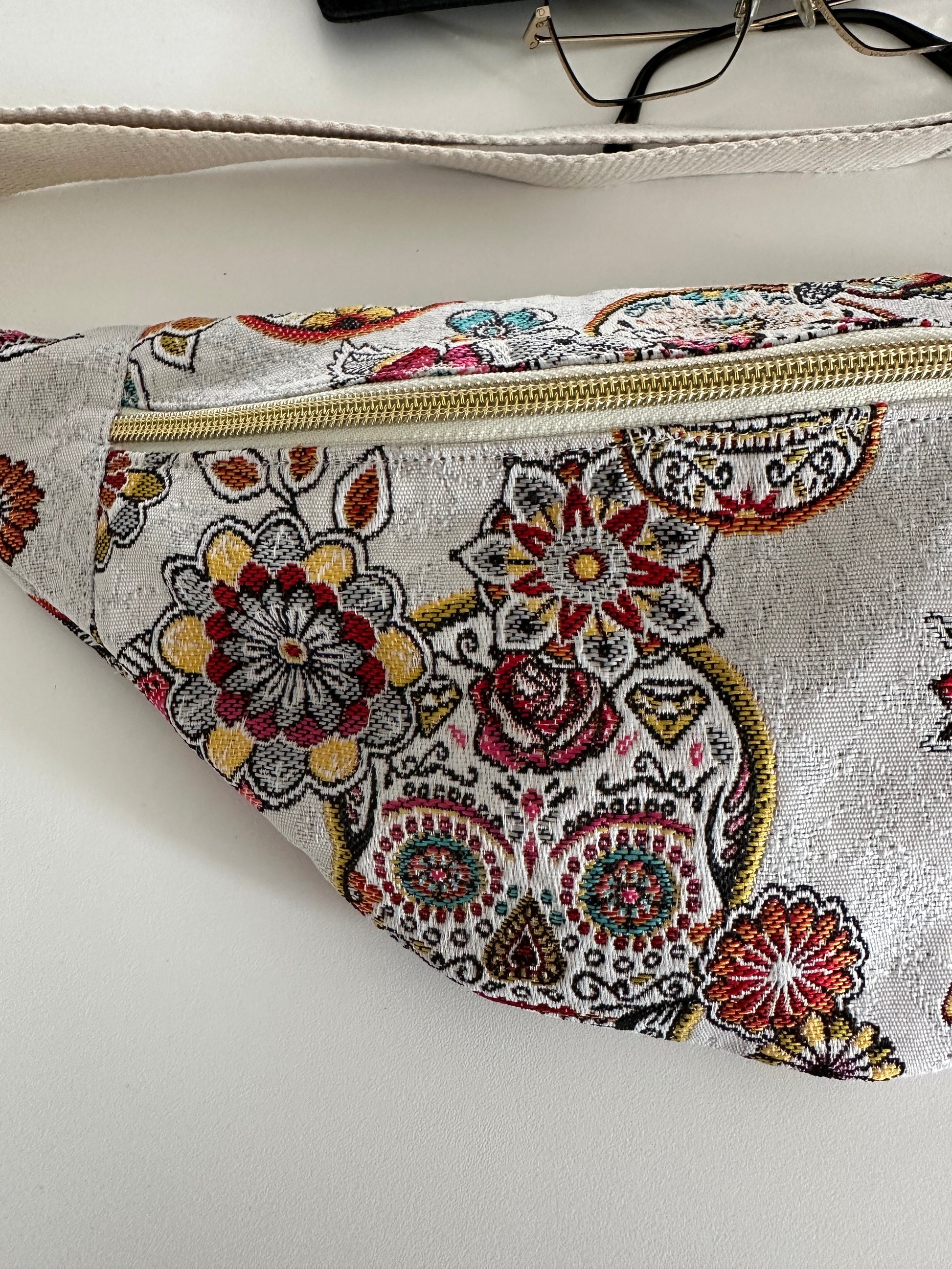 Sac banane M en tissu jacquard Cristobal fond bleu