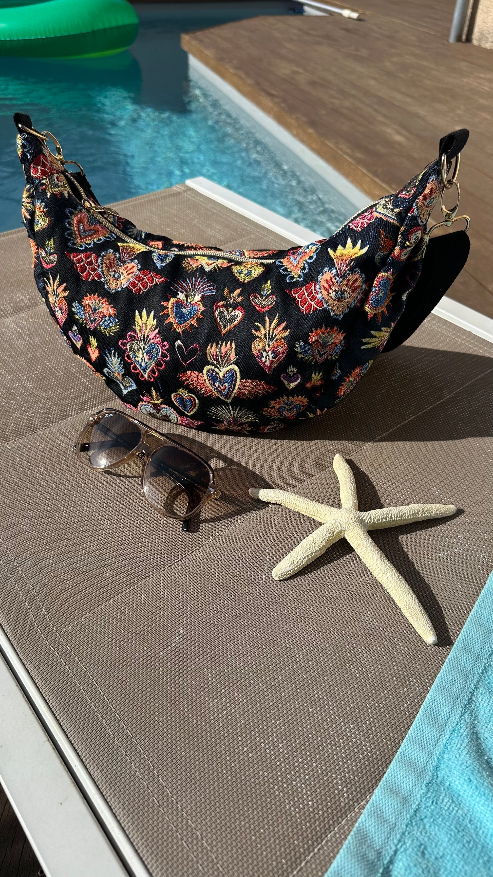 Sac Modèle Demi Lune Jacquard Corazon bleu nuit