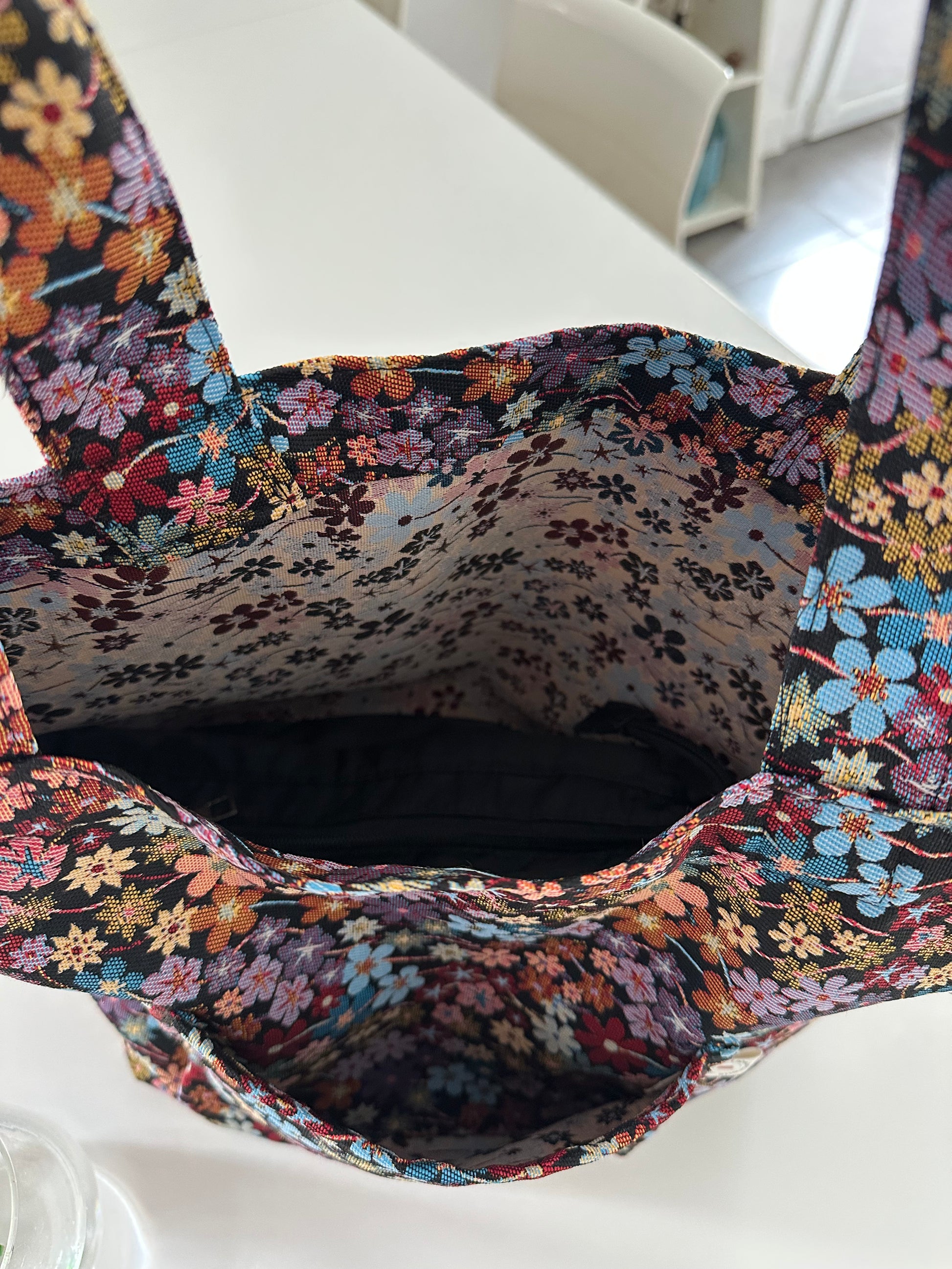 Sans doublure, l’intérieur du sac est donc l’envers du tissu aussi joli que l’extérieur.