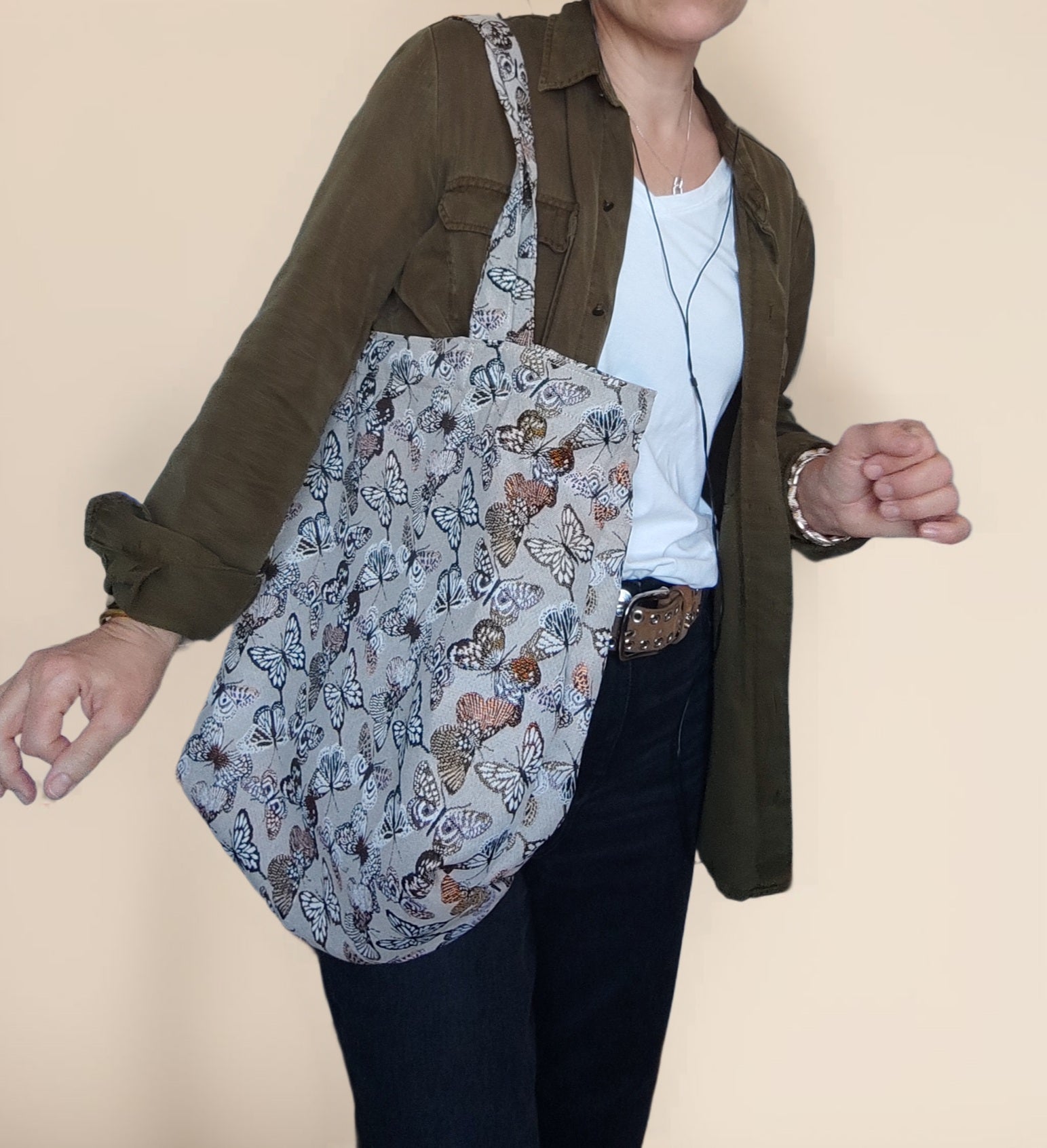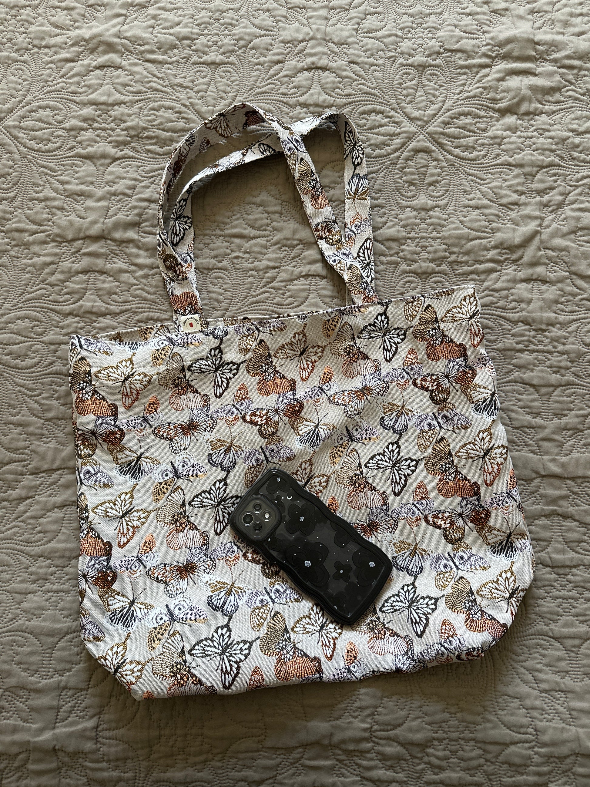 Tode Bag en tissu Jacquard, motif papillons marrons ,ocres et orangés.