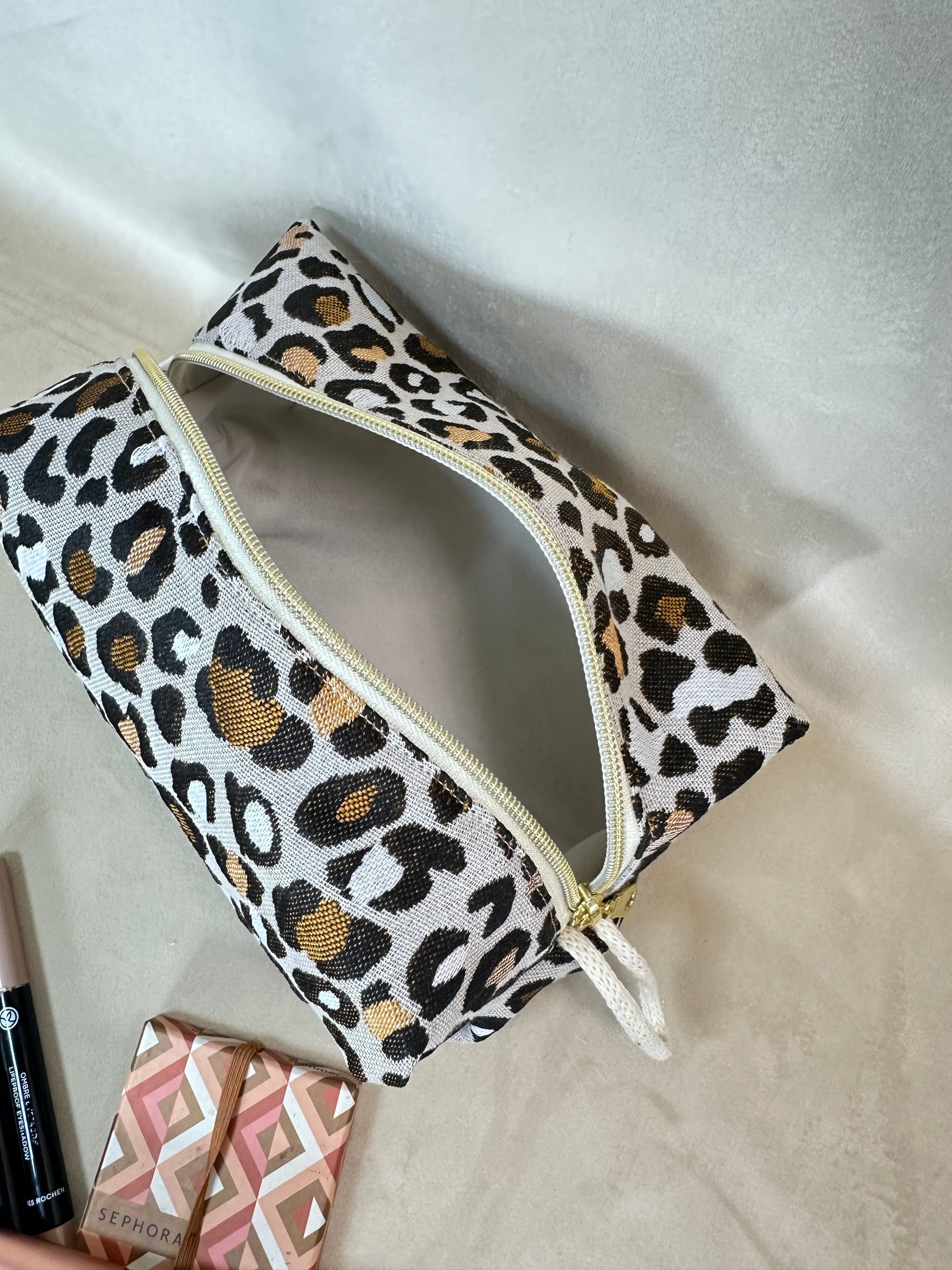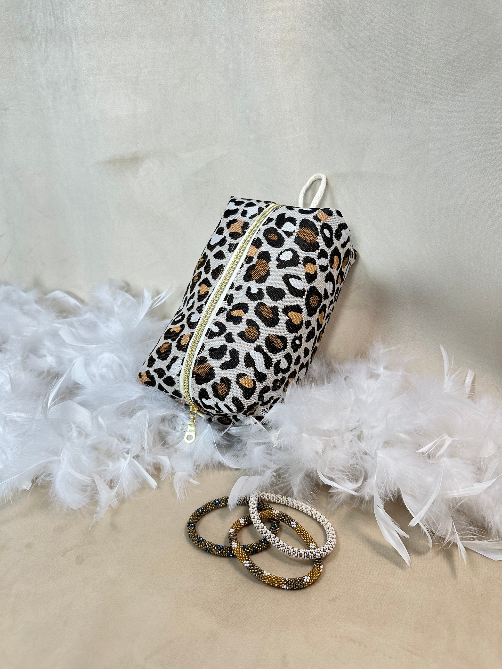 Trousse de toilette en tissu jacquard tacheté .